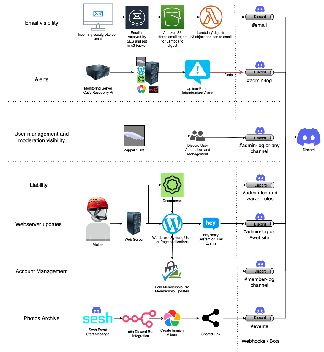 Discord is our chat room program where members talk. Setup was complex, we utilize a number of bots for integrations, so Discord has a dedicated setup page: Setup Overview